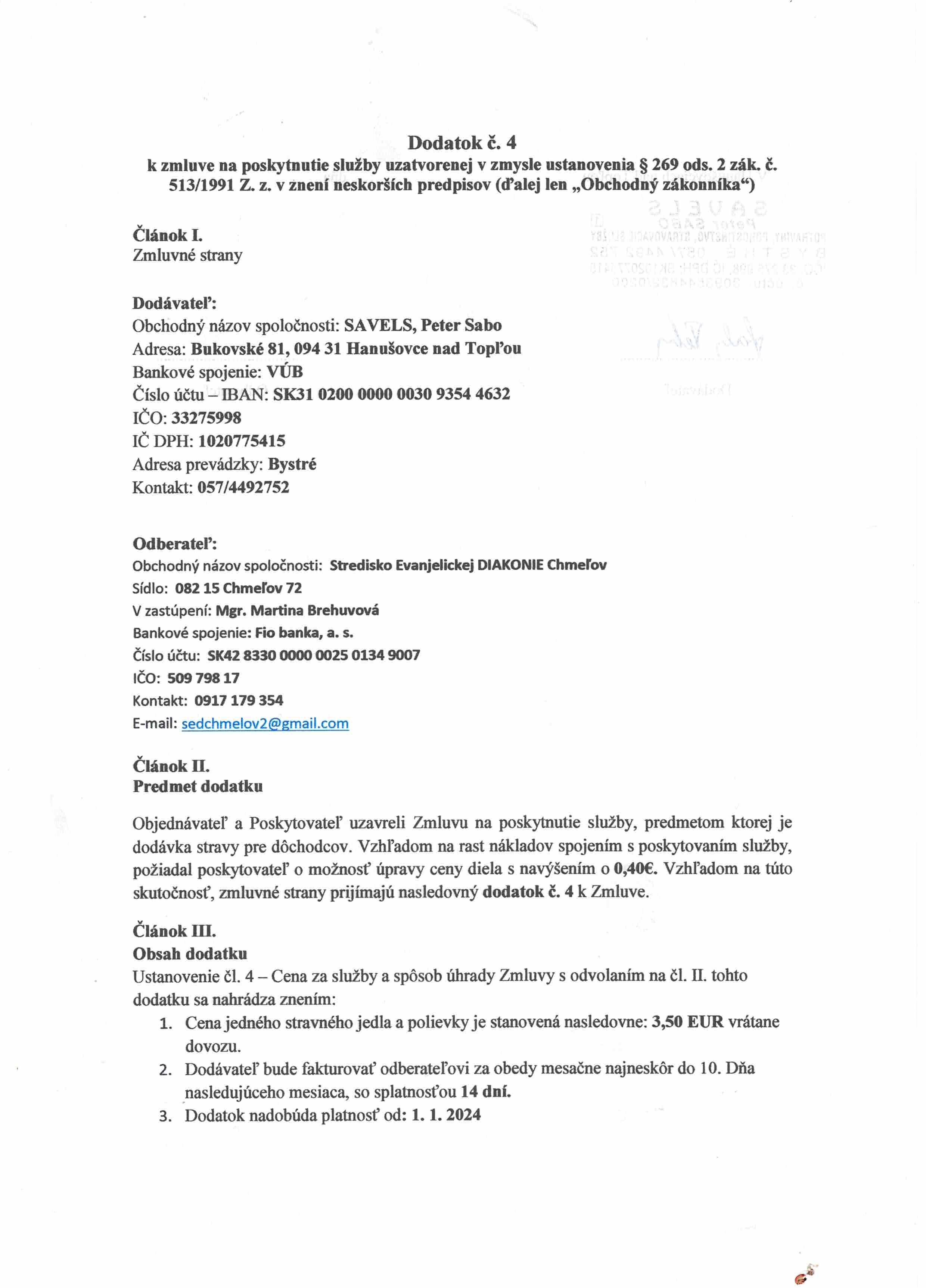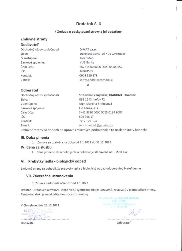 Dodatok č. 4, k zmluve o dodaní stravy ( DIMAT s.r.o.)