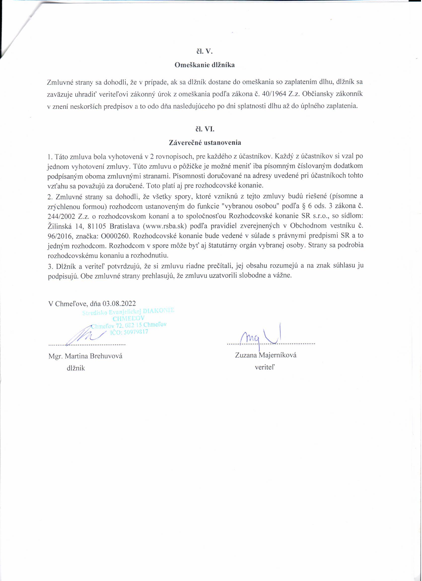 Zmluva o pôžičke