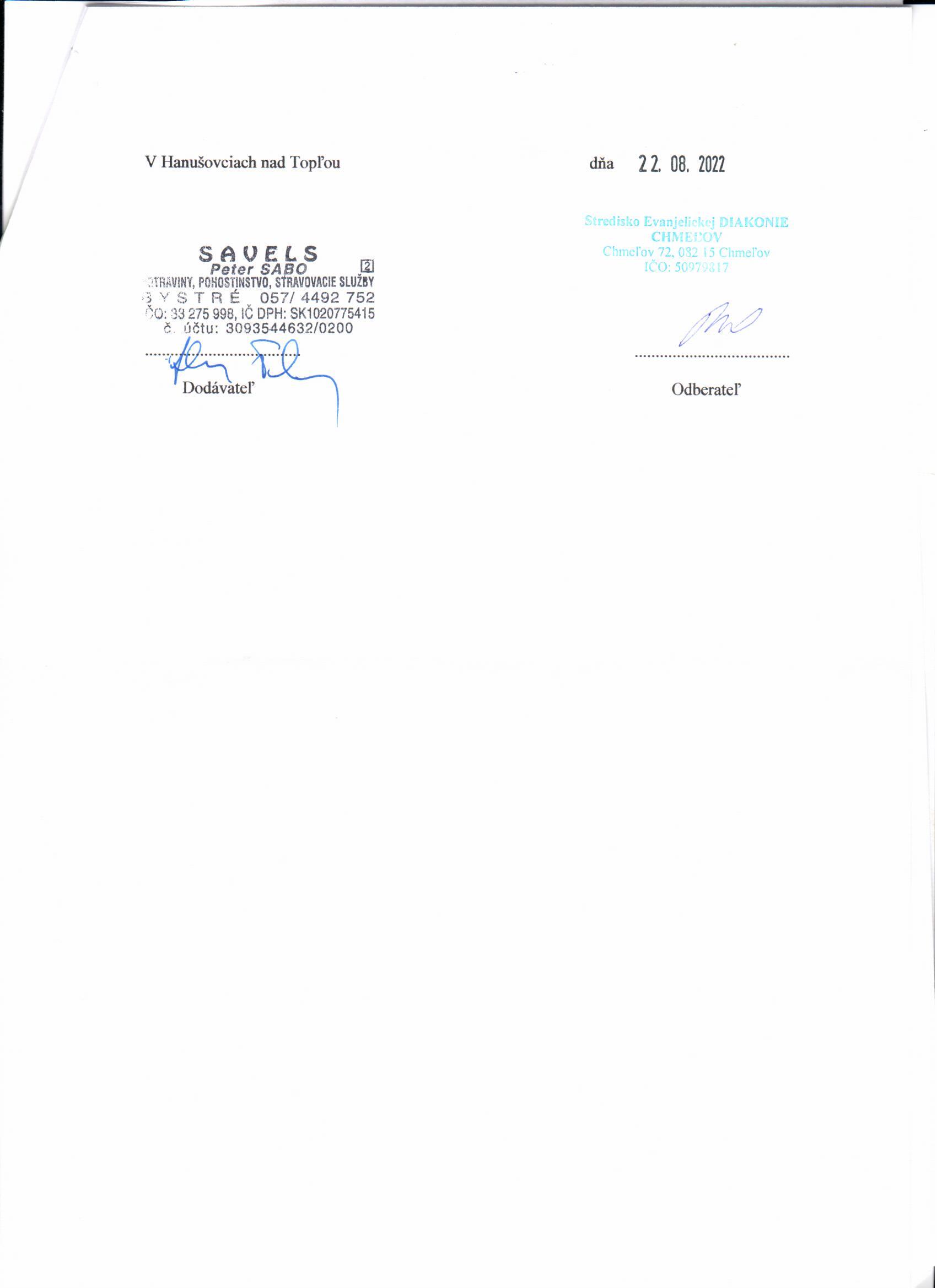Zmluva č. 2/2022 o poskytovaní príspevku na prevádzku SS s obcou Chmelov