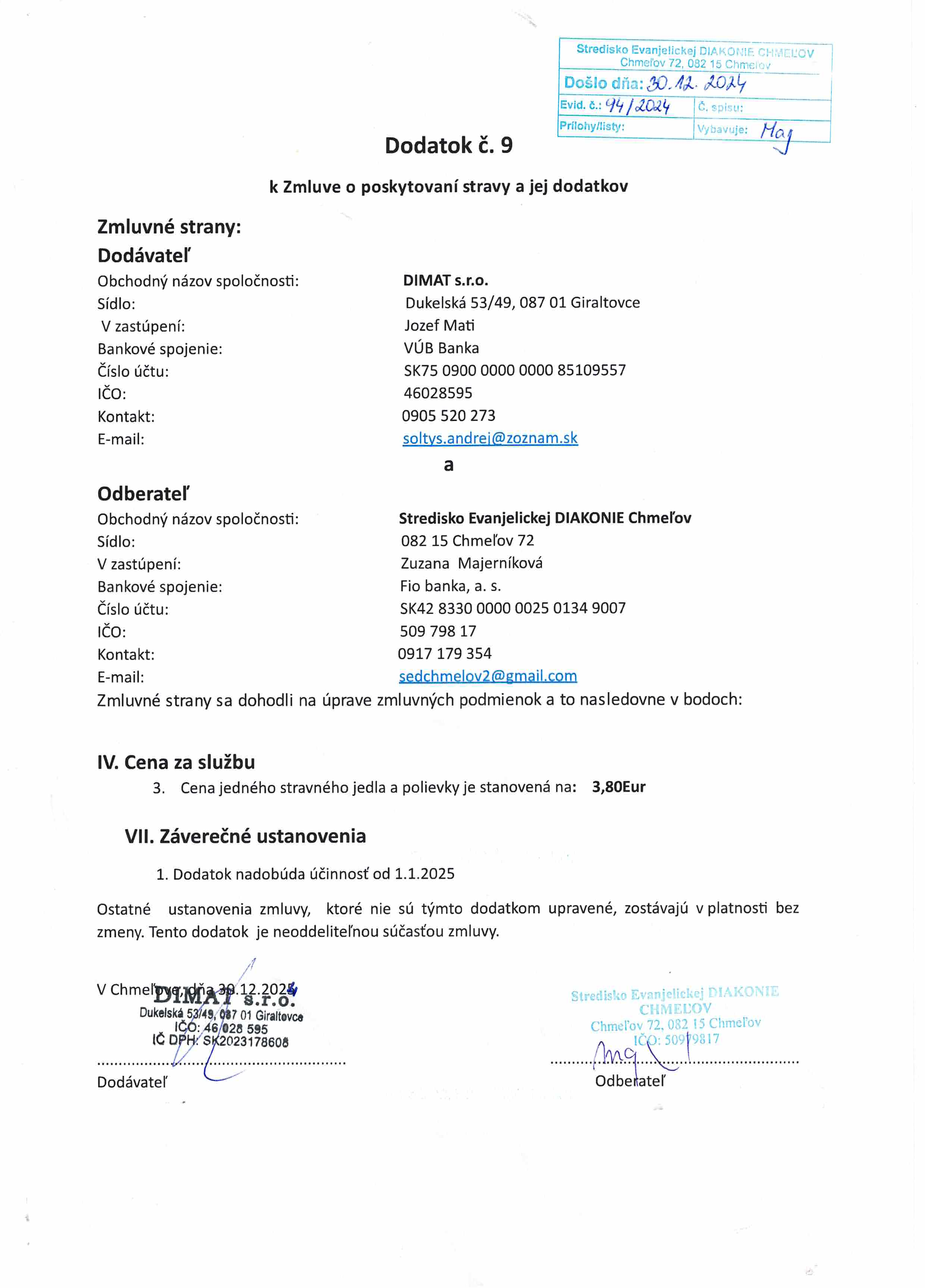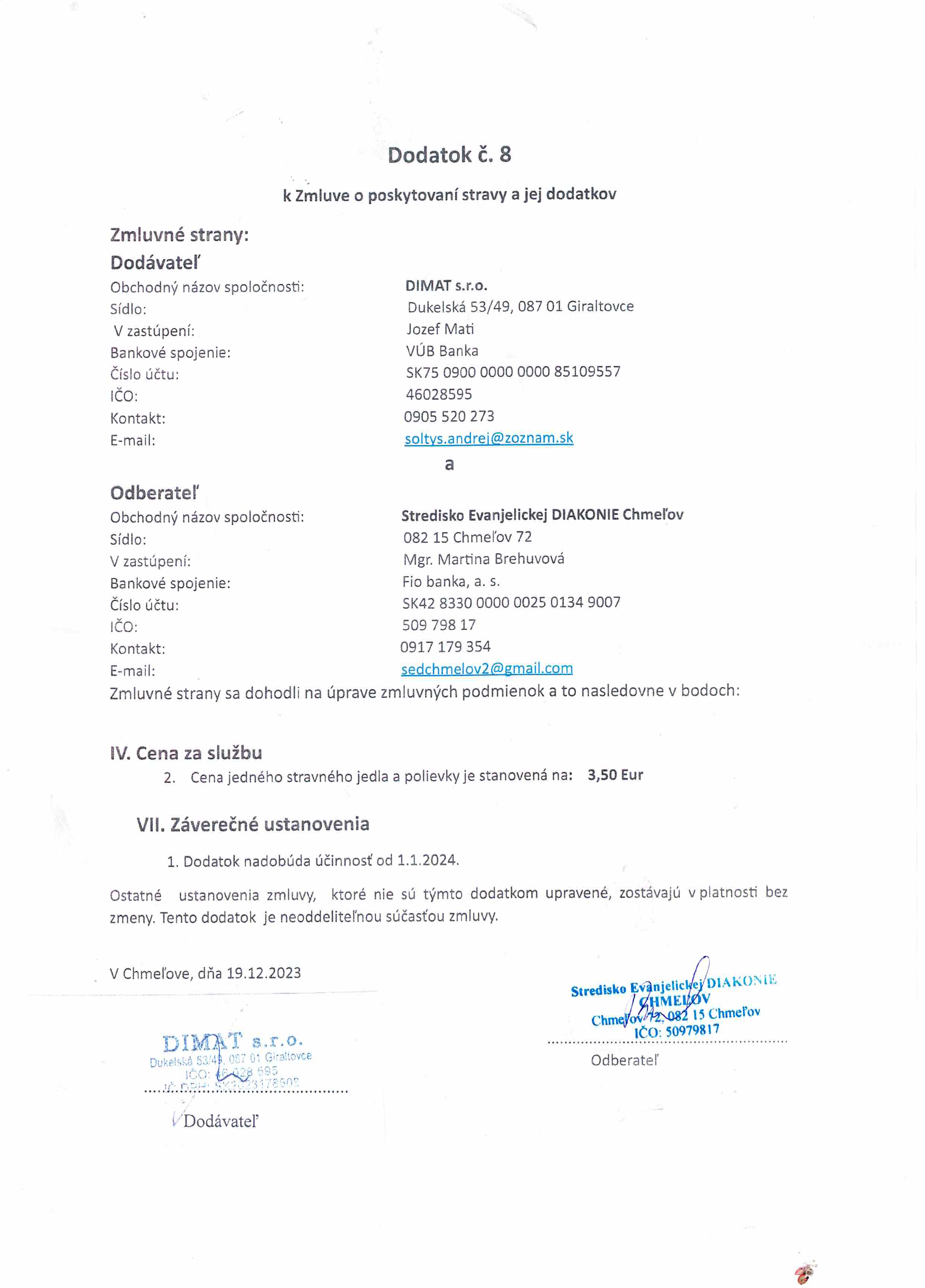 Dodatok - strava DIMAT s.r.o
