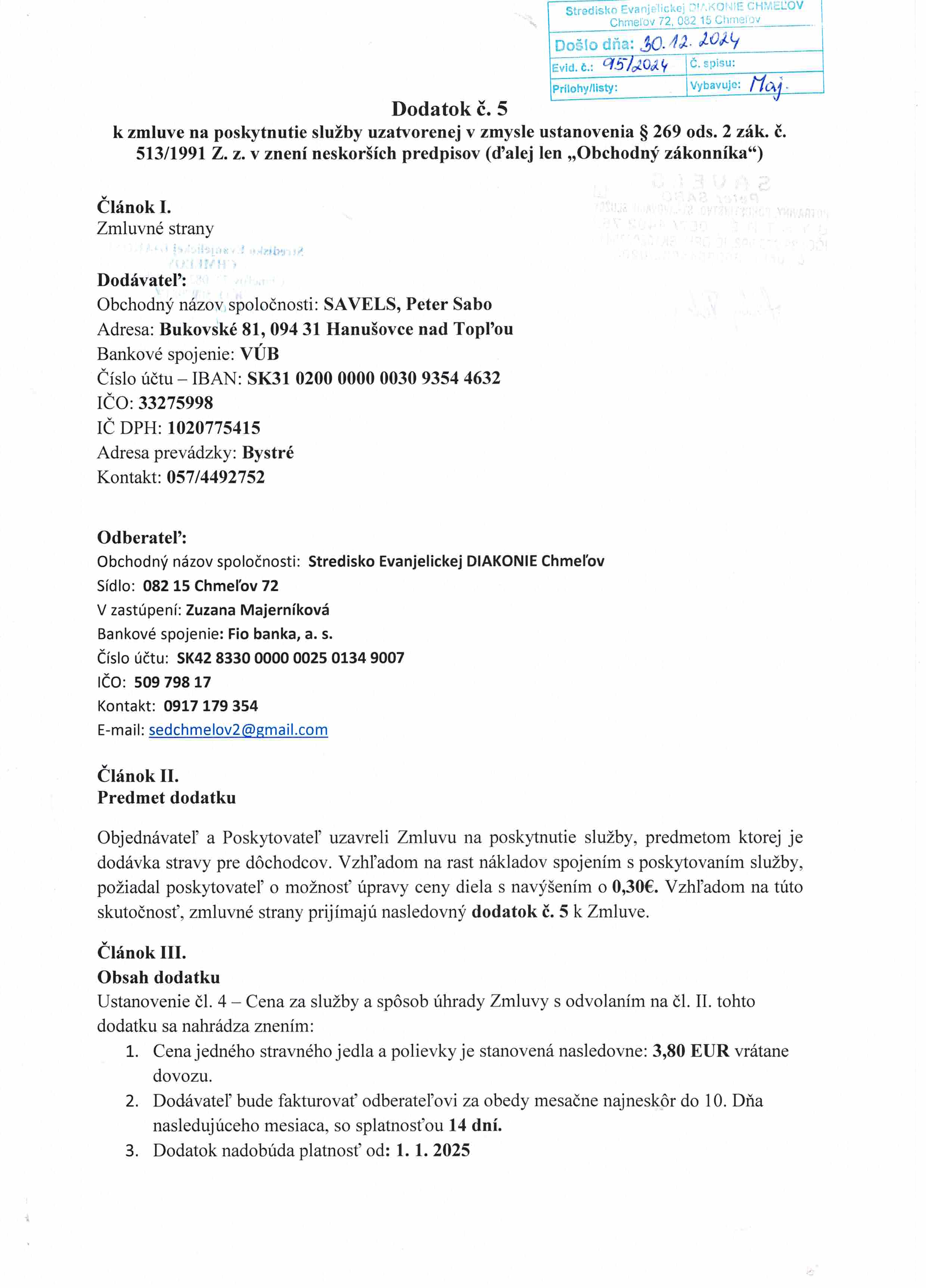 Dodatok č. 2 k zmluve o dodaní stravy (Peter Sabo)
